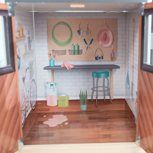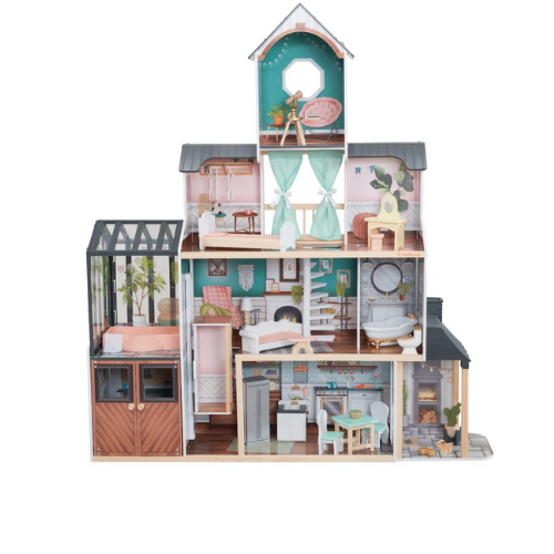 Bring make believe to life with the Celeste Mansion Dollhouse from KidKraft. A dreamy house for 12-inch dolls, this enormous home features four floors packed with exquisite details. Your child's dolls can ride up and down in style in the working elevator, throw a fancy party in the patio area with working lights, relax in the greenhouse with a built-in jacuzzi or stargaze with their very own telescope.