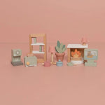 Discover the beautiful wooden accessory set for the new Little Dutch dollhouse! This set contains everything your dollhouse needs to come to life. From a stylish cabinet to a lush plant and a charming TV. Enjoy a delicious espresso with the cute espresso machine or make a tasty breakfast with the toaster and prepare the perfect meal with the cute pan set. With this set, playing in the dollhouse becomes a true experience!