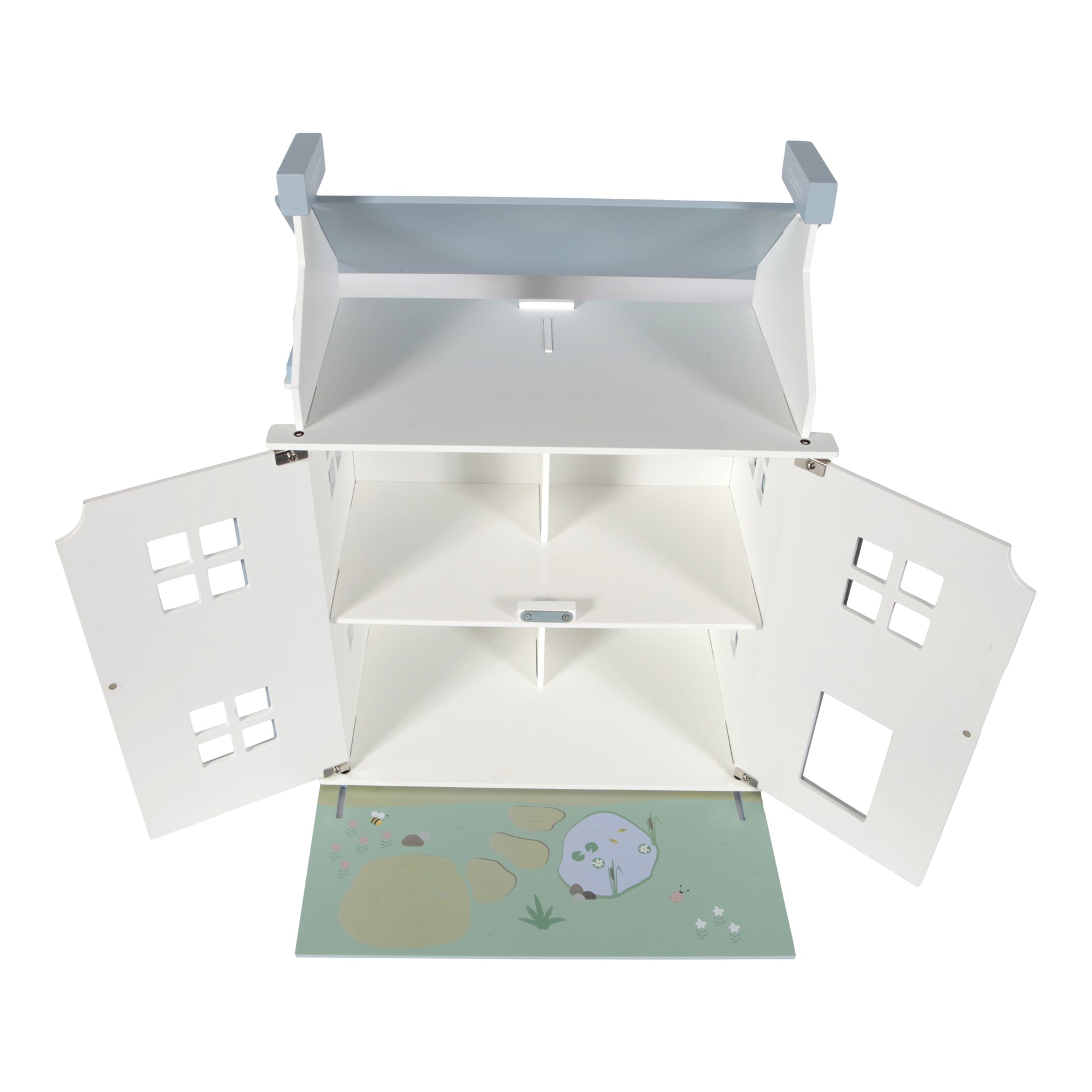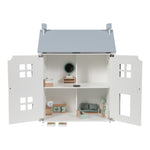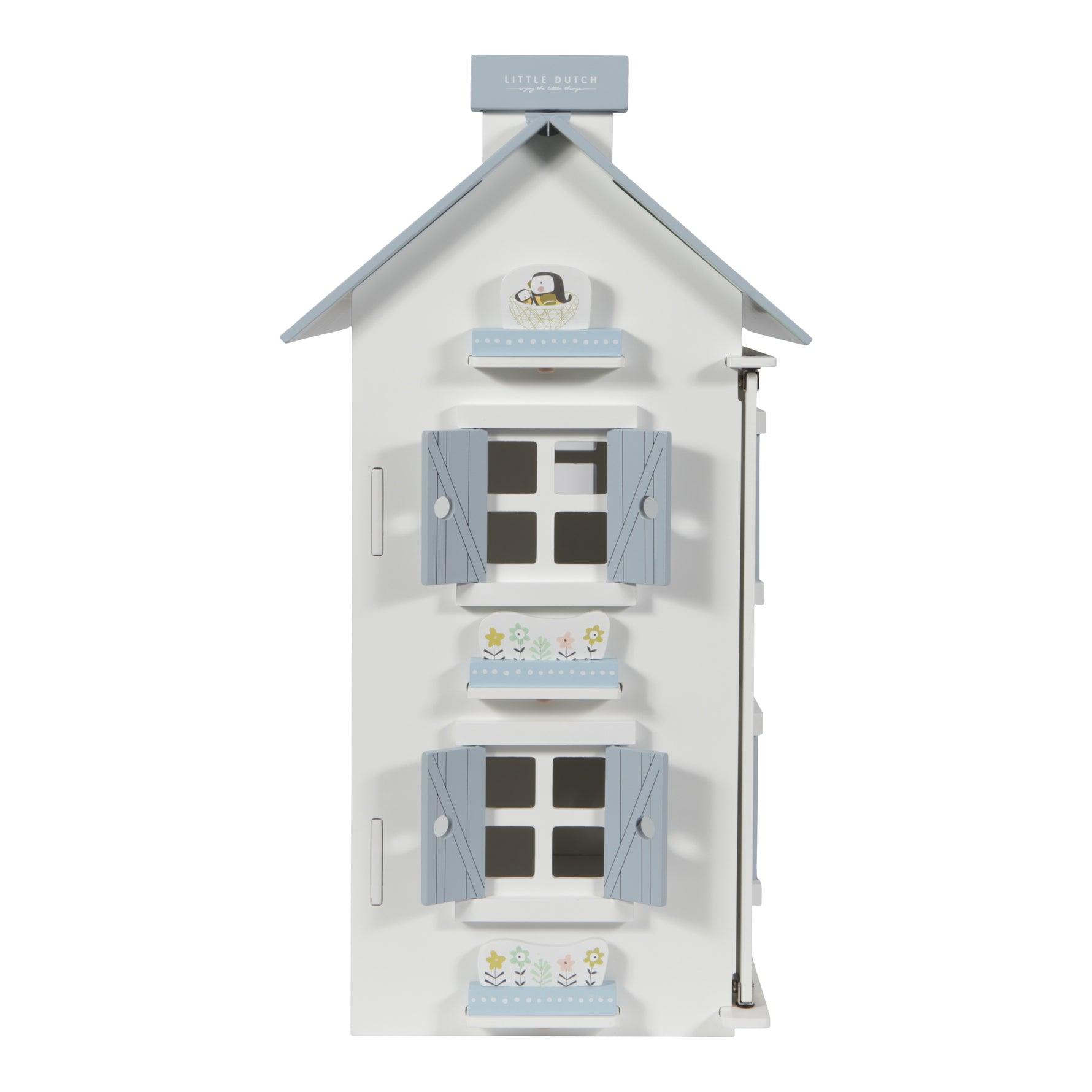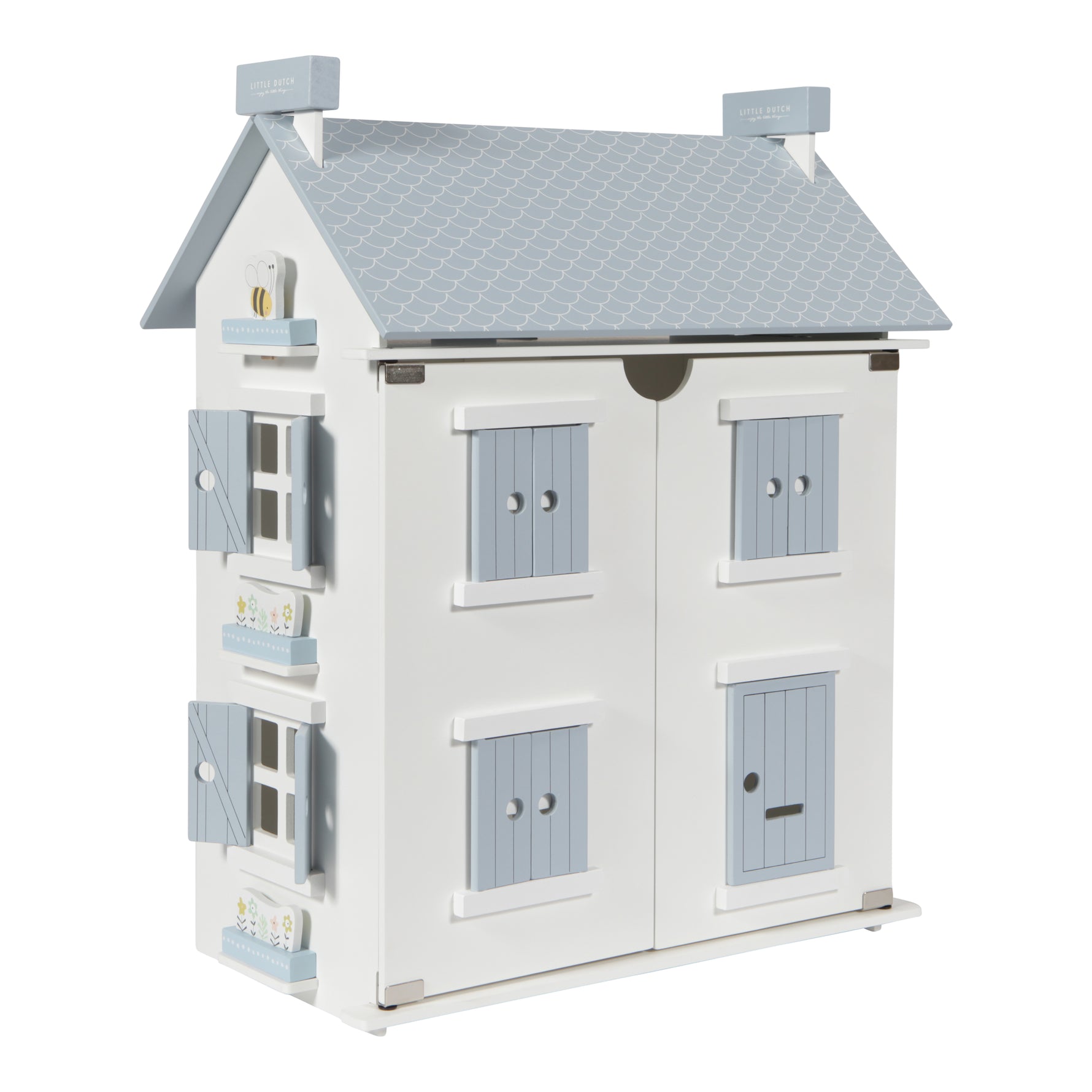 This classic Little Dutch doll’s house guarantees loads of play fun. The sturdy wooden frame has cute blue shutters and a blue roof that can be removed to show the second floor. And there is more: the roof panel is actually a garden! The house comes with 19 pieces of furniture and accessories. It also includes stickers that help you decorate the house in your own unique way.