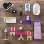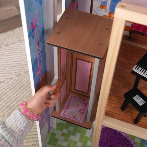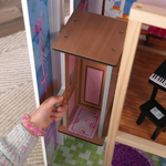 Playing house has never been so fun. With the four-foot KidKraft My Dreamy Dollhouse, kids have four rooms to decorate, with a gliding elevator that spans all three floors. Two balconies and a working front door offer plenty of room to explore and enjoy. The included 14-piece accessory kit includes a grand piano that plays music and a toilet with flushing sounds. This dollhouse is a dream come true for 12-inch dolls.