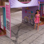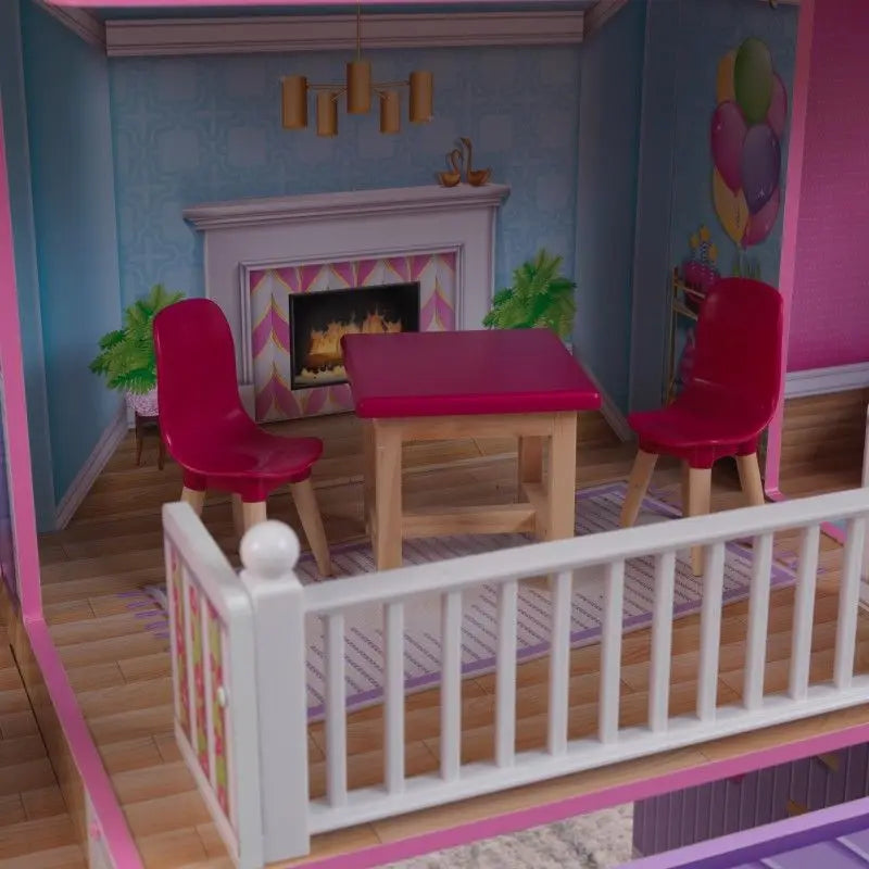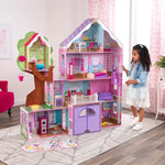 The KidKraft Treehouse Retreat Mansion is a swirl of candy-sweet colors, fun hidden surprises and grand play features to jolt the imagination into a world of anything is possible. This four-level structure has an obvious "wow" factor right away—an attached whimsical treehouse, complete with benches nestled in branches, working string lights and even a crank with bucket for raising or lowering supplies or secret messages to friends. The ground level boasts a bathroom, exercise area (yoga, anyone?) and garage with lift-up door. When ready, the elevator will take you to the next floor to explore your creativity. Over 50 cling stickers are included for custom decorating and re-decorating. More delightful surprises turn up in every room of the house—like the lights and sounds stove, furniture with hidden storage areas and a bookcase that opens up to reveal a private entrance to the outdoor area. One thing is guaranteed: life will never be boring in the Treehouse Retreat Mansion by KidKraft.