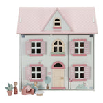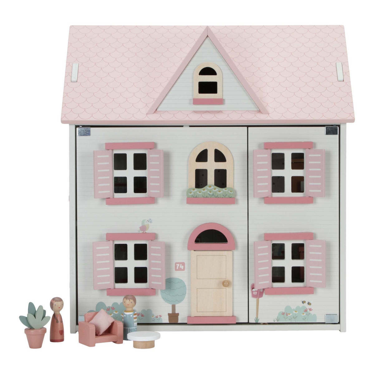The wooden dollhouse from Little Dutch is the perfect place for children to unleash their creativity. This beautiful house comes in a white color with a pink roof and features wooden shutters that can be opened and closed. The roof can also be opened for extra play fun, and a part of the roof can be transformed into a garden. The interior of the house is very detailed and decorated with beautiful illustrations, both inside and outside. Jim and Rosa, two peg dolls, are included with the dollhouse so children can start playing right away. The house includes a living room, kitchen, bathroom, a bedroom for mom and dad, and a children's room. Each room is furnished with matching furniture and accessories, providing a realistic and attractive play experience. This dollhouse provides hours of playtime and can be further expanded with additional accessory sets that are available. It is a great way to let children enjoy their imagination and creativity WARNING: Not suitable for children under 3 years due to small parts. Choking hazard. Adult assembly required.