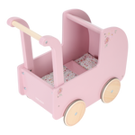 This beautiful wooden doll carriage has a nostalgic design and is decorated with an ornate flower illustration. The car comes with a wonderfully soft pillow, a warm blanket and a soft mattress, all in the beloved Soft Flowers design. Thanks to the rubber wheels, it drives smoothly and protects the floor from scratches. Perfect for little doll parents who want to transport their dolls in style. A timeless toy that offers years of fun!