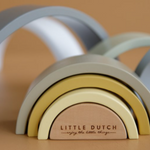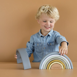 This wooden rainbow is a stacking tower in the shape of a beautiful rainbow. Children can use these semi-circular shapes to play and learn at the same time. They can stack the arches or use their imagination to make all kinds of creations, like a train tunnel, a house for little dolls or bridges for small cars. There are endless possibilities!