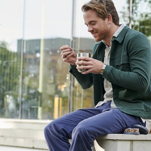 Always running late in the mornings? We get it! Take your breakfast with you in the Ellipse insulated lunch pot in natural brushed. How about some chilled yoghurt and crispy granola? The separate compartment in the lid will make sure the granola stays nice and crunchy! This double-walled stainless steel pot will keep your yoghurt refreshingly cool... all the way to lunchtime! You can enjoy your breakfast on the train or at your desk: just add the ingredients together, mix and... tuck in! Want something hot to get you through your night shift, lectures, or gym class, but there's no microwave available? No problem: heat up some soup at home, pour it into the lunch pot, and pop some croutons in the lid. Even hours later, you can tuck into a delicious hot meal! This yoghurt pot will keep food hot for 6–8 hours* or cold for 12 hours.
