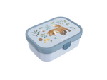 Choose variety with the lunchbox Campus with Forest Friends print, including removable bento bowl and fork. The possibilities for a great children's lunch are endless. Bring along fresh bread and fruit? Or a savoury snack for school? Chunks of cheese, sausage, nuts or dried fruit? Choose, mix and keep it nice and separate. Thanks to the two separate compartments, the bento always keeps everything in the lunchbox deliciously fresh. Prefer just sandwiches? Take out the bento tray and you have plenty of room!