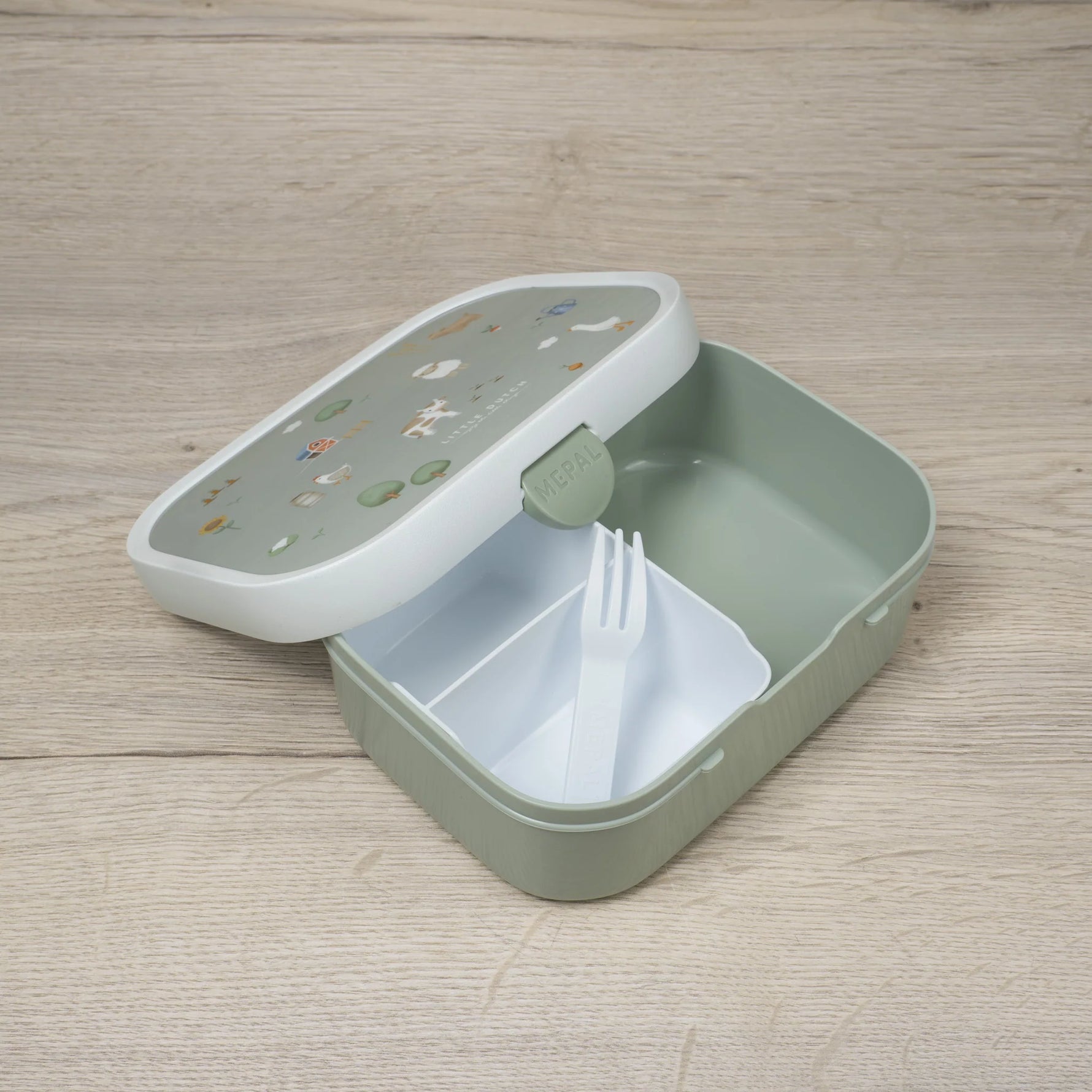 Give your child a fun and varied lunch with this Little Farm lunch box with removable bento tray from Mepal. The possibilities for fantastic packed lunches are almost endless. What will it be today? Colourful sandwiches and fresh fruit salad? Or a filling playtime snack to keep them going? Slices of cheese or ham, nuts, or dried fruit? Pick and mix to your heart's content! It's easy to pack everything separately in this handy lunch box. The bento tray divides the lunch box into separate compartments. The tray has two separate sections and keeps the contents of the lunch box deliciously fresh. Would you rather 'just' have sandwiches? Remove the bento tray, and you have room for four generously filled slices of bread. Both the lunch box and the bento tray can be cleaned in the dishwasher