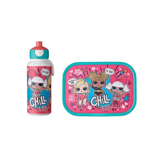 Lunch set Campus with LOL Surprise print. Set contains a leak proof pop-up drink bottle and a lunch box.