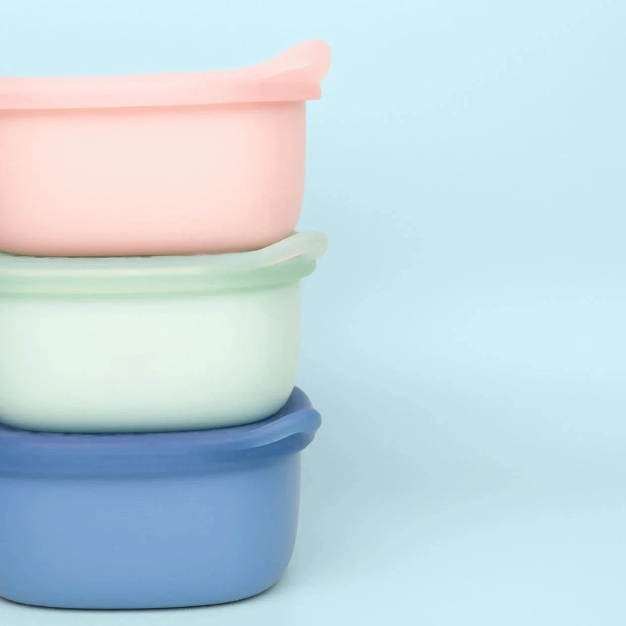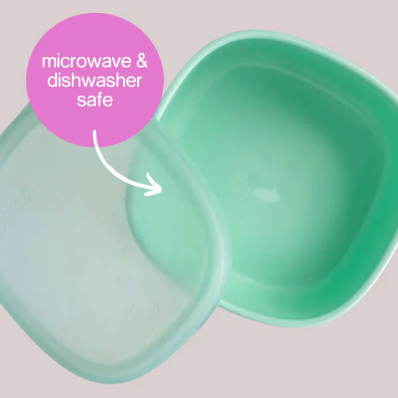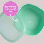 When it's time to eat, the flexible silicone corner tab lets small hands easily grip to remove from the lunchbox and open the lid independently. Microwave safe, simply remove the lid before heating up.