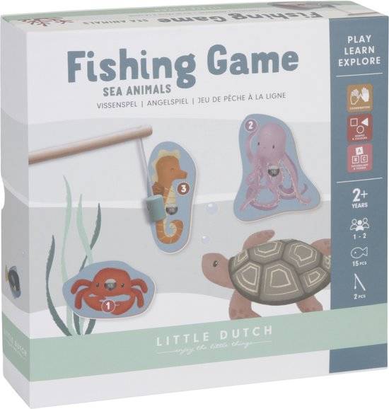 Try to catch all the marine animals with this fun fishing game by Little Dutch. Just make sure you don't reel in the old boot! This classic fishing game stimulates children’s fine motor skills and concentration. What’s more, the level of difficulty can be adjusted to the players’ ages and abilities. This will ensure playing fun for both younger and older children. The underwater animals are made of wood and the aquarium is made of cardboard.