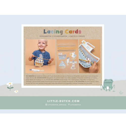 Let’s get lacing! Follow the pattern of the cool pictures. Pull the string through the little holes to add some details to the mainsail of the sailboat, or to the lower deck of the fisherman´s boat. Lace along the lighthouse, the pelican and Jack the seagull. A fun and engaging activity. This set of lacing of cards comes with one string tipped by aglets for easy stringing and 5 cardboard cards with the beautiful illustrations of the Sailors Bay collection. Toddlers will love practicing their fine motor skills by lacing the string through the small holes with perfect precision. Hours of fun and play guaranteed!