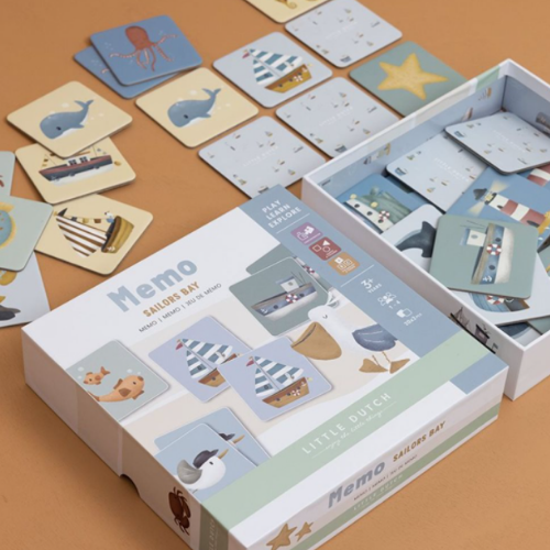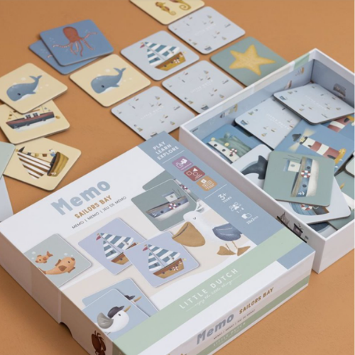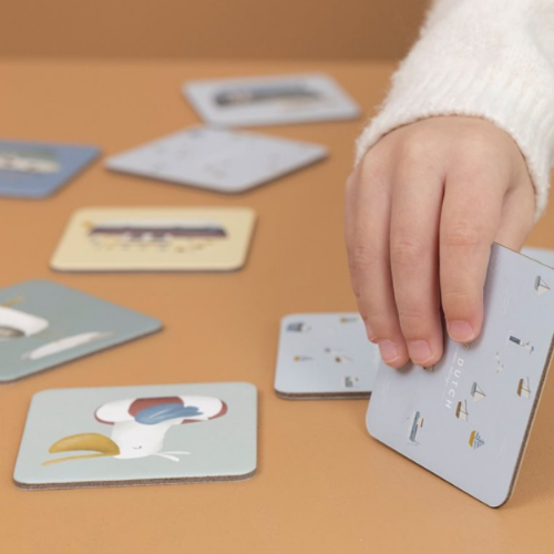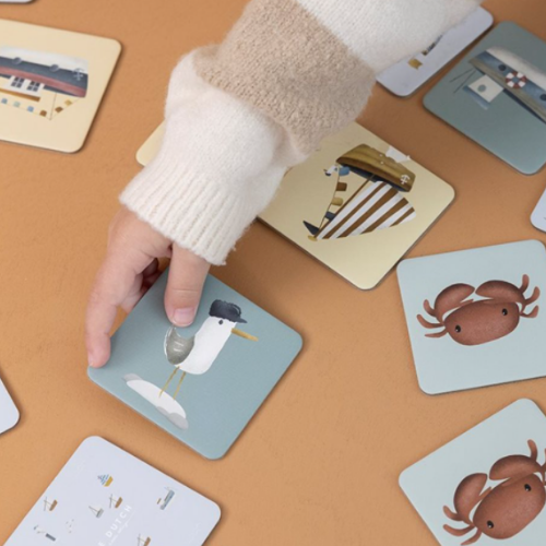 Find the lighthouse, search for the starfish. This Little Dutch memo game is as fun as it is educational. Each card is beautifully decorated with a harbour-inspired illustration. Shuffle the cards and lay them face down on a surface. Collect the most matching pairs to win! If you like, you can play this game solo too. Memo ‘Sailors Bay’ makes for hours of enjoyment and teaches kids to take turns. The card game also trains important skills such as concentration and focus.