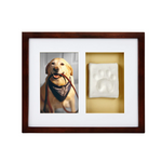 Capture and cherish your furry one’s paw print forever with Pearhead’s pawprints wall frame. Solid wood and stained in a rich espresso finish, this frame includes everything you need to make your furry buddy's paw print and display it in your home. And it’s perfect for dogs or cats! The frame includes one package of soft, air drying clay, a ruler, and double-sided tape. The clay requires no mixing or baking! It’s also 100% pet safe. Simply knead the clay and roll it out. Press your furry buddy’s paw in the clay gently but hard enough to create an impression. If you make a mistake - no problem!  You can redo it as many times as you need until you get the perfect impression. Once finished making the print, use the ruler to create a square around the impression. Let dry for 1-2 days and then use the tape to stick to the background board. It will hang perfectly with the included sawtooth hanger on your wall in your home or bring it to work to cherish! Whether you are a new pet owner, or have spent years with your furry buddy, this keepsake is a great way to cherish and remember your furry buddy’s little paws. Pearhead’s pawprints wall frame is an adorable keepsake frame for any pet owner. Product dimensions: 12” W x 9.50” H x 1.38” D; Photo insert: 4” x 6”