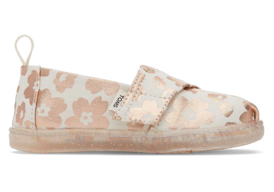 Let your little one shine in our metallic floral print Alpargata shoes featuring champagne glitter outsoles. With breathable uppers and cushy soles designed for all-day play. Plus, an easy slip-on design, so they can put them on all by themselves!