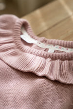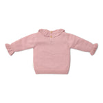 Wow! This knitted sweater in a soft melange light pink color is a must-have for mini-fashion icons! This sweater not only keeps your little one wonderfully warm, but also steals the show with cute ruffles at the neck and sleeves. Perfect for, for example, an autumn walk or a fashion show in the living room. Comfortable, stylish and a little playful - just like your little one! Available in sizes 74 to 104.