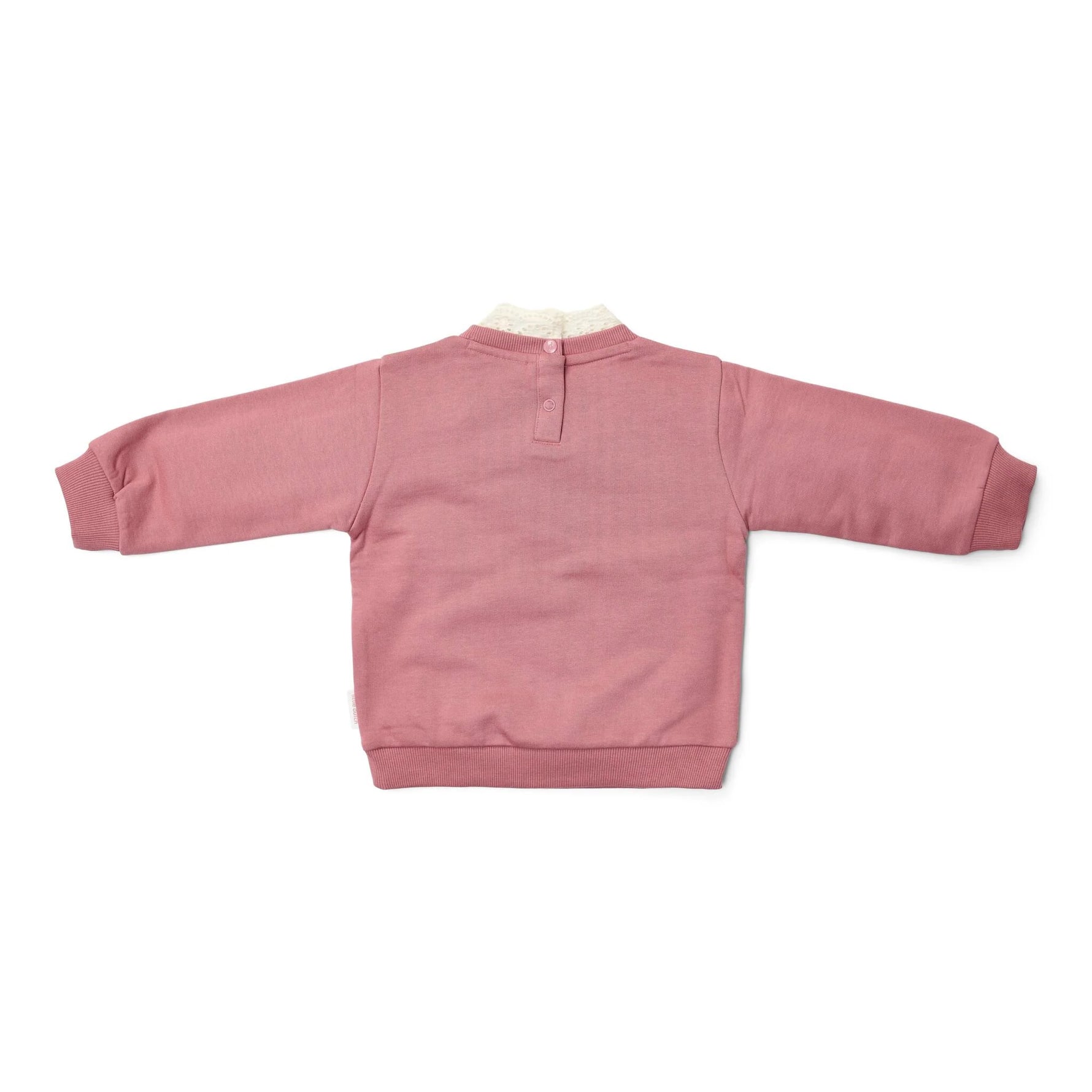 This sweater in beautiful trendy color is the perfect combination of warmth and style. This soft sweater has an elegant collar with contrasting embroidery for a refined look. The delicate floral embroidery adds a playful detail. This sweater is the stylish and responsible addition to your little one's wardrobe. Available in sizes 74 to 104.