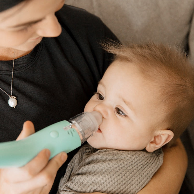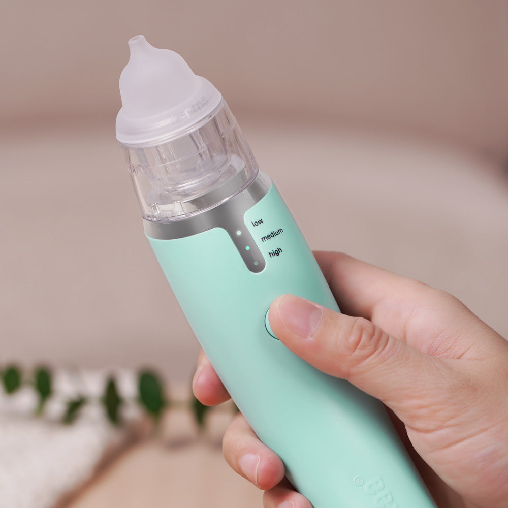 This handy little essential features a single button to let you cycle through three different strength levels to clear even the most stubbornly blocked nasal passages with just one hand! The soft, safe silicone tips are perfect for delicate little noses and can be easily sterilised before each use.