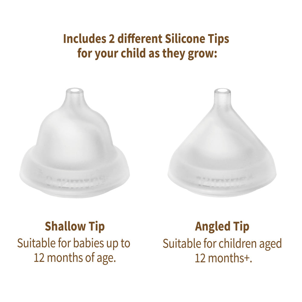 • Soft, durable silicone tips in two sizes to grow with your child and protect their nose.