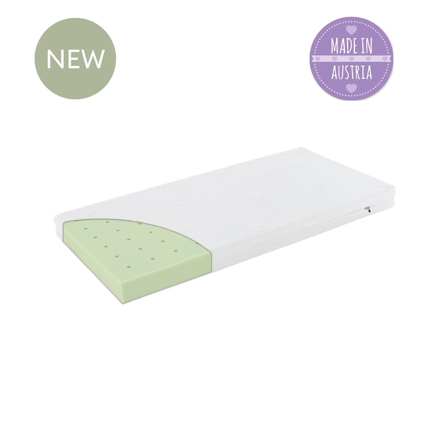 The Gaia Baby Hera cot mattress is made from a superior ventilated cold foam. The open-pored cold foam optimises air circulation through the core of the mattress, aiding temperature regulation, drawing moisture away thus preventing overheating.
