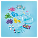 Make beautiful bracelets with the Totum glitter tubes craft set. Put the colored glitters in a bracelet and finish the bracelet with a charm. Contents: 4 colors of glitter, 6 charms, 6 small rings, 3 bracelets, funnel and stickers.