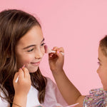 This cheeky brush set features four makeup brushes for kids: an eyebrow and lash brush, together with other four gentle brushes for fun and gentle application of the Miss Nella make up for kids range.
