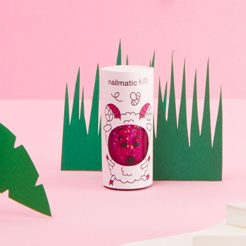 Water-based nail polish for kids - Sheepy - clear raspberry glitter