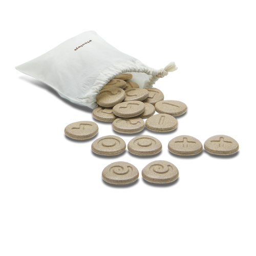 The Tactile Stones offer a wide range of opportunities for play! Complete with 24 stone pieces made from PlanWood that can easily be stored in a provided fabric bag, the set invites children to explore their sensory skills, sequence and pattern recognition, matching and categorizing skills and more. Experiment with the following activities: Matching Game, Memo Game, Matching Sequences, Stone Tracing, Line Drawing Practice, Stacking Game, or Blind Matching Game! These stones are also compatible with dough for imprinting and stamping. Playing cards are available for download online