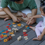 Develop your language skills with this alphabet set! 26 Lower case letters and 5 vowels are included to encourage communication and language practice (31 pieces in total). We use red colors for the vowels so children can begin to recognize vowels versus consonants. There is also a printable play card for viewing or download online.
