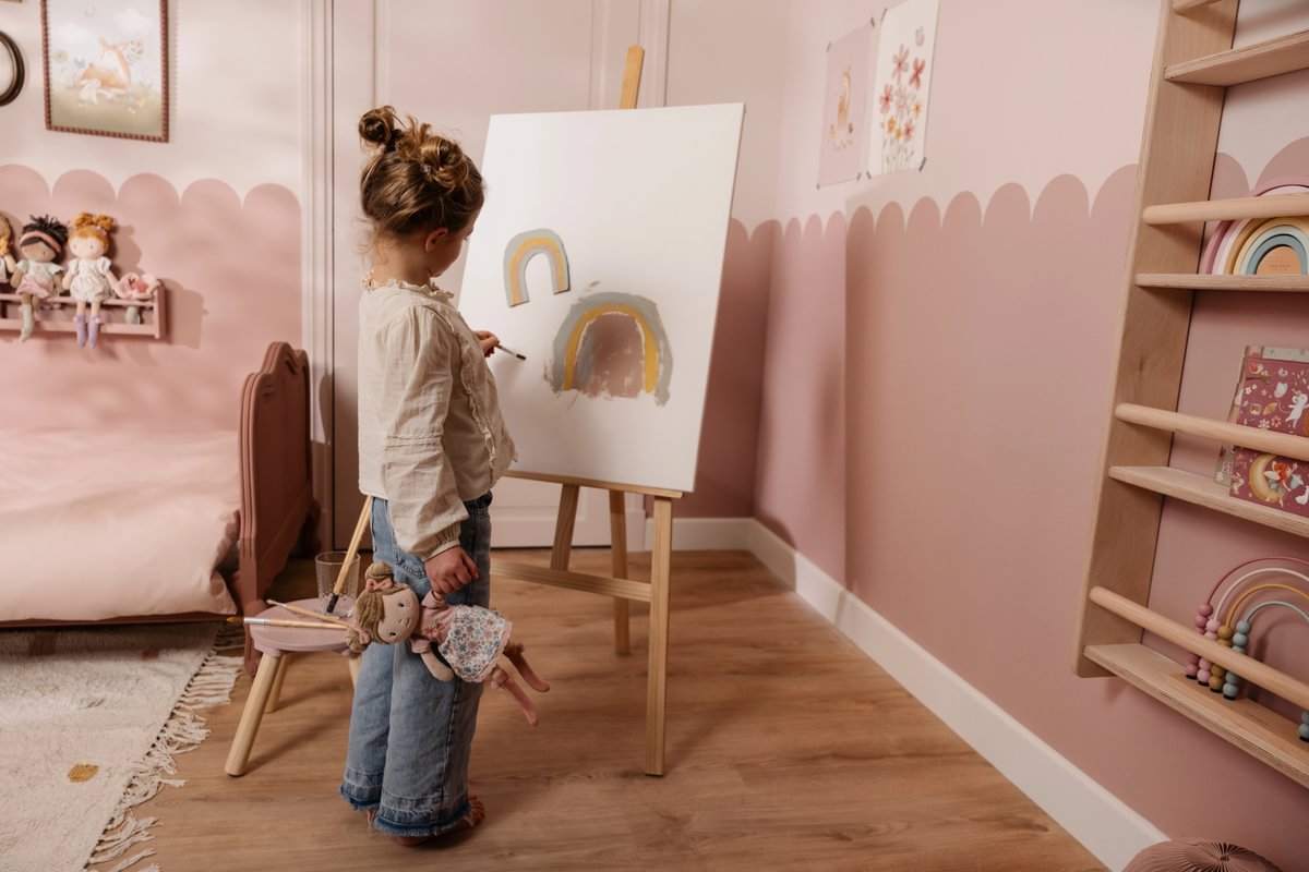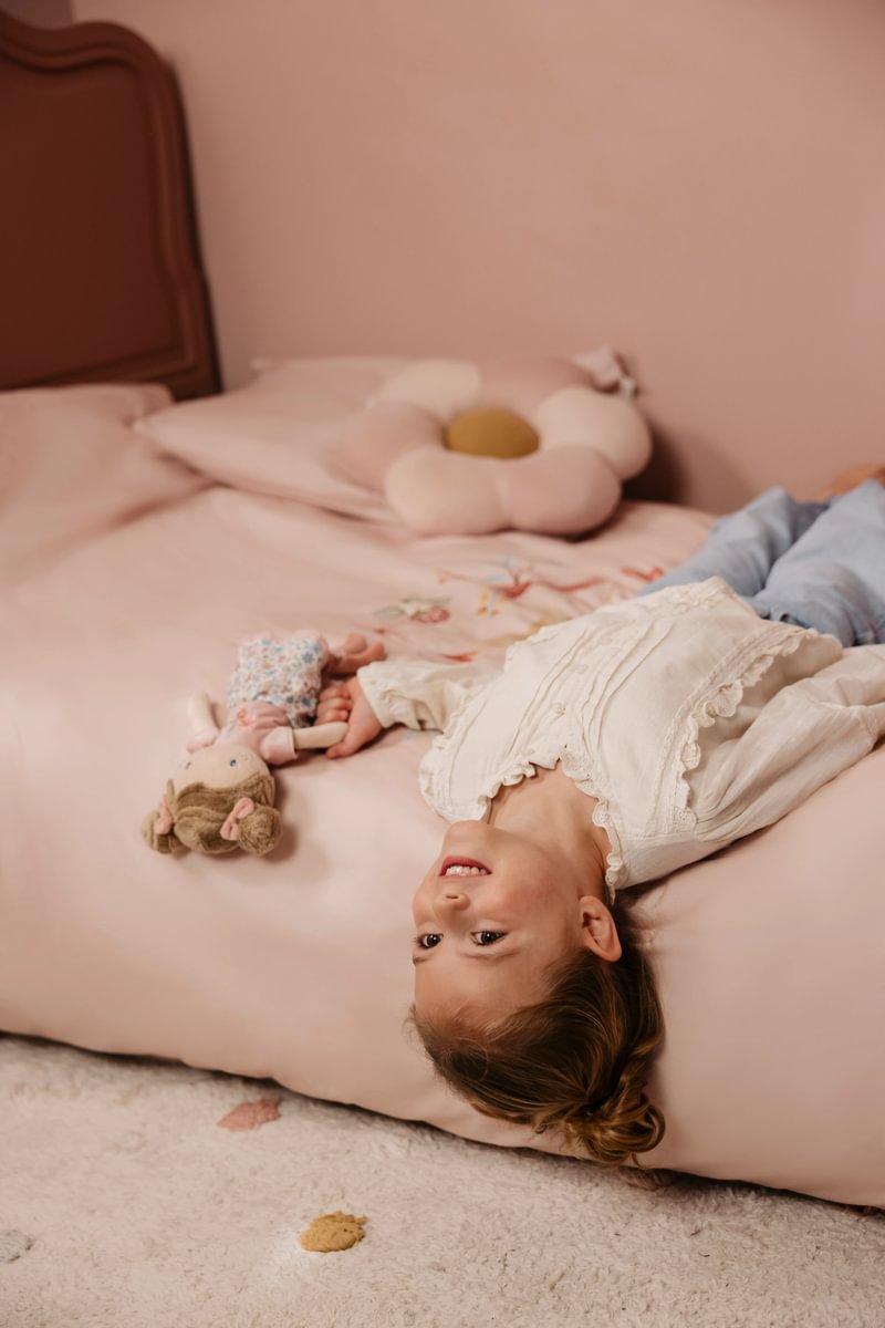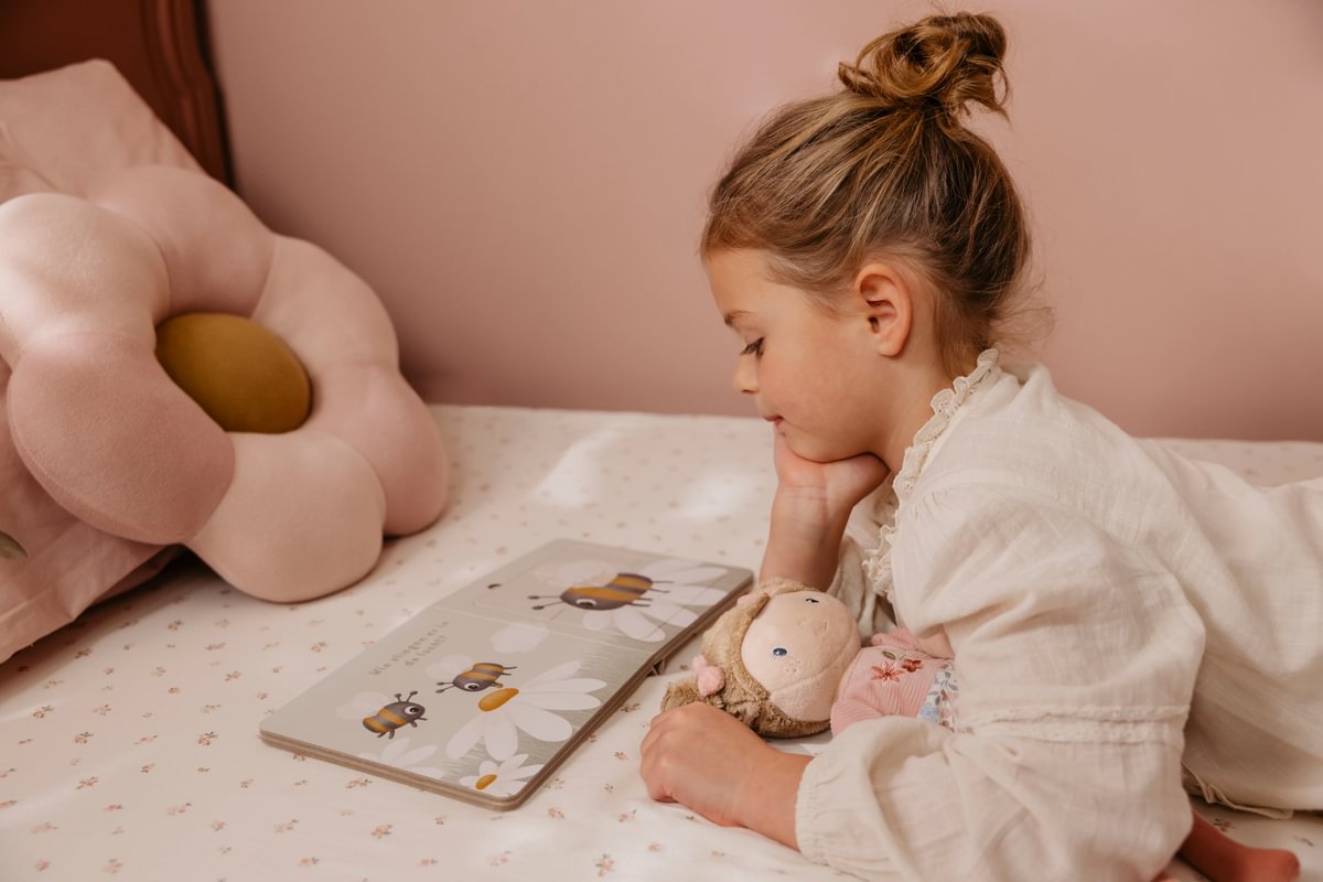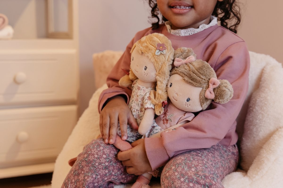 Meet Rosa, a sweet 35 cm cuddly doll with cute buns and bows in her hair. She wears a cheerful floral skirt, a soft T-shirt and boots with a pompom. Made of wonderfully soft material, perfect for cuddling and going on adventures together. Rosa invites you to role play and quickly becomes your child's best friend.
