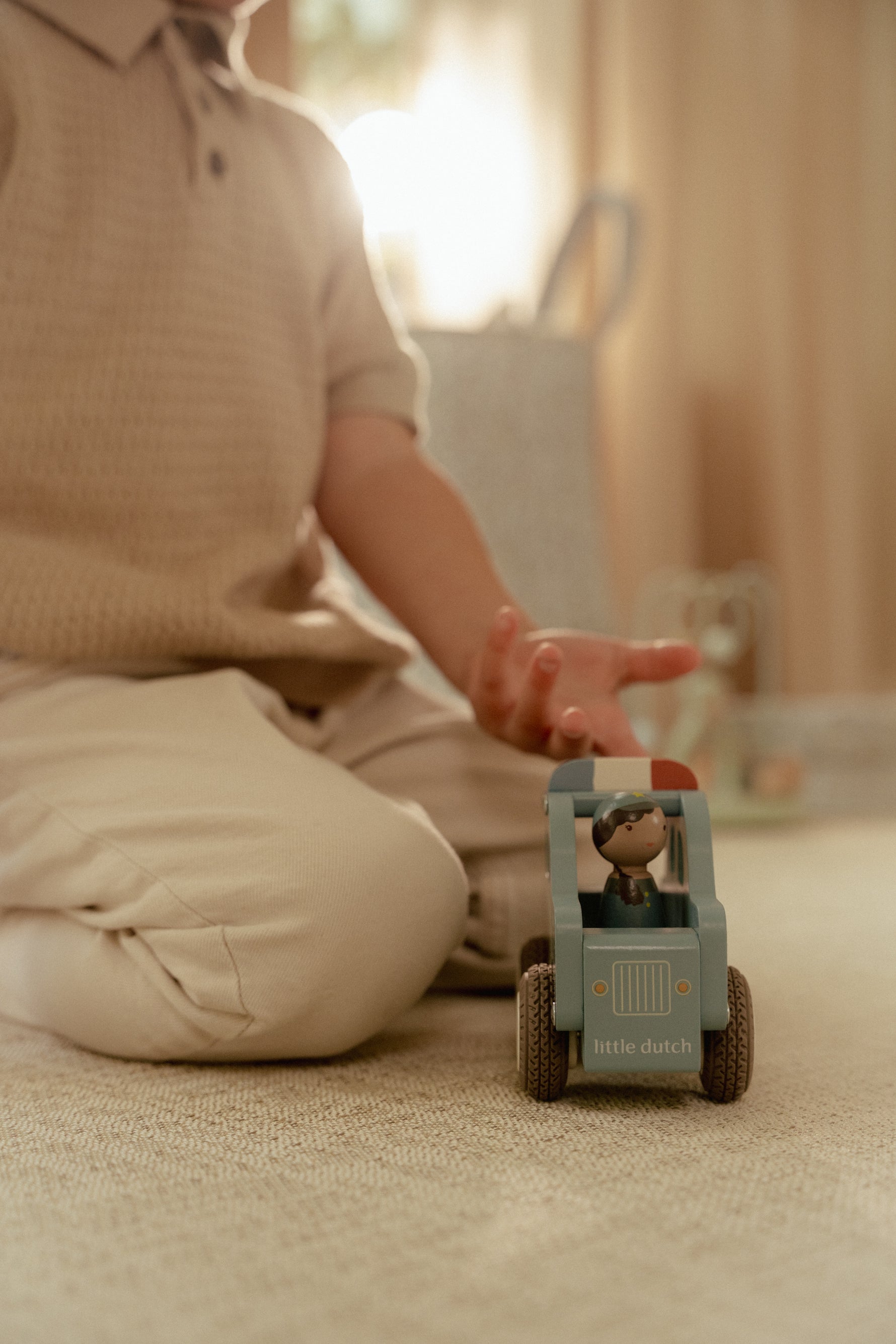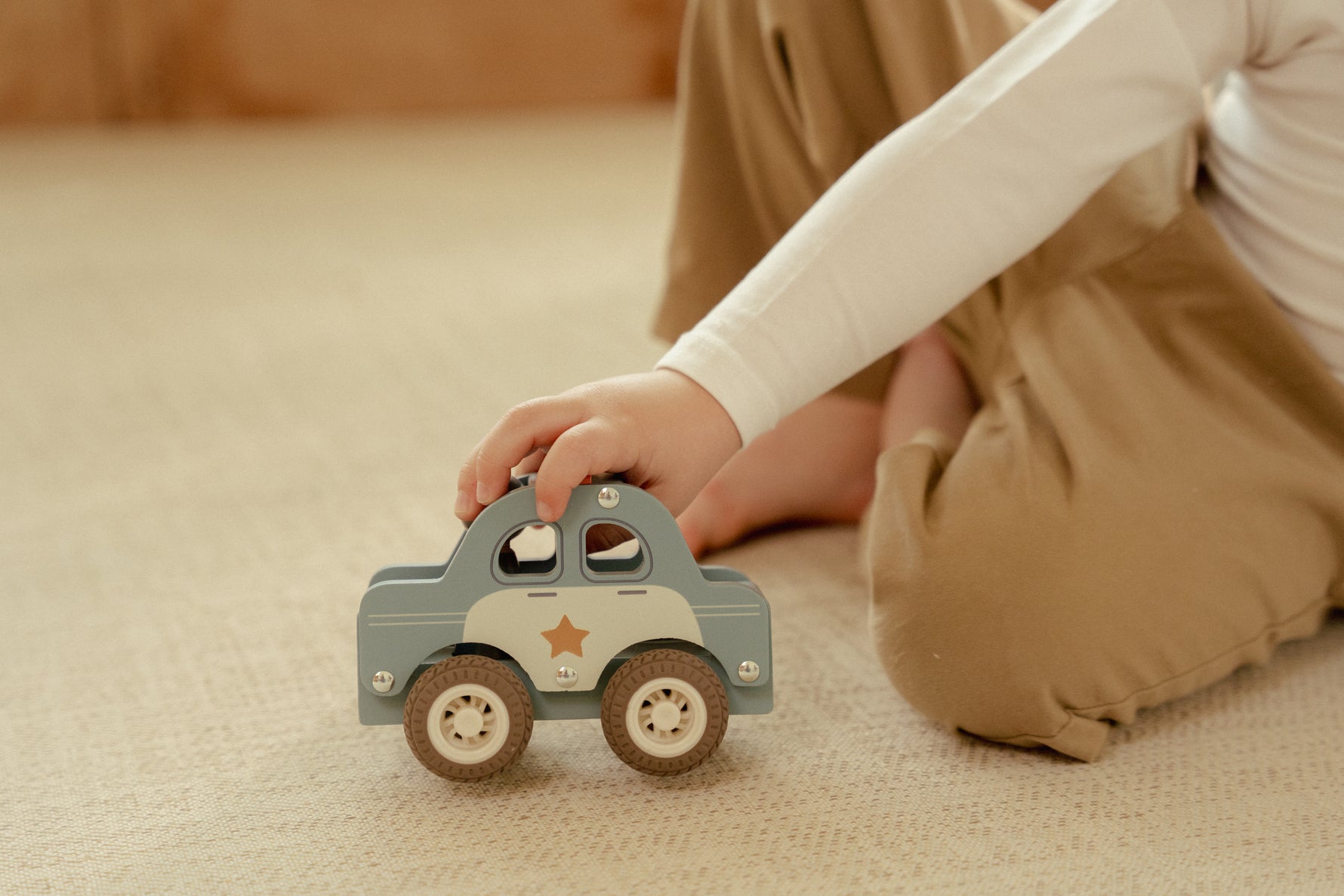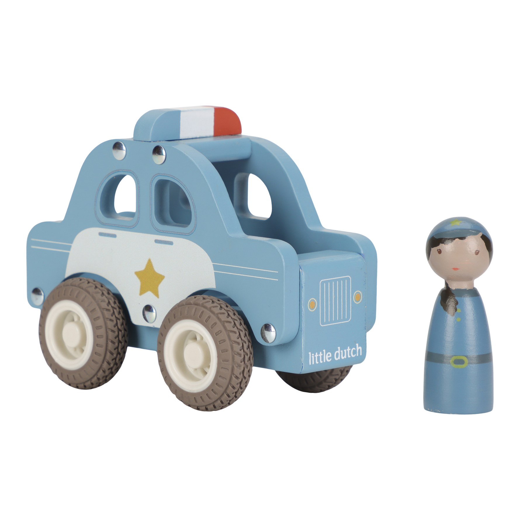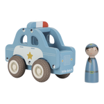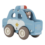 Emergency? The wooden police car races quickly to the crime scene! With rubber wheels for smooth rides and a tough police officer behind the wheel, you're ready to keep the city safe. Reenact exciting chases and lock up the crooks. This police car toy is perfect for role-playing games and combines great with the wooden police station. Who are you helping in the city today?