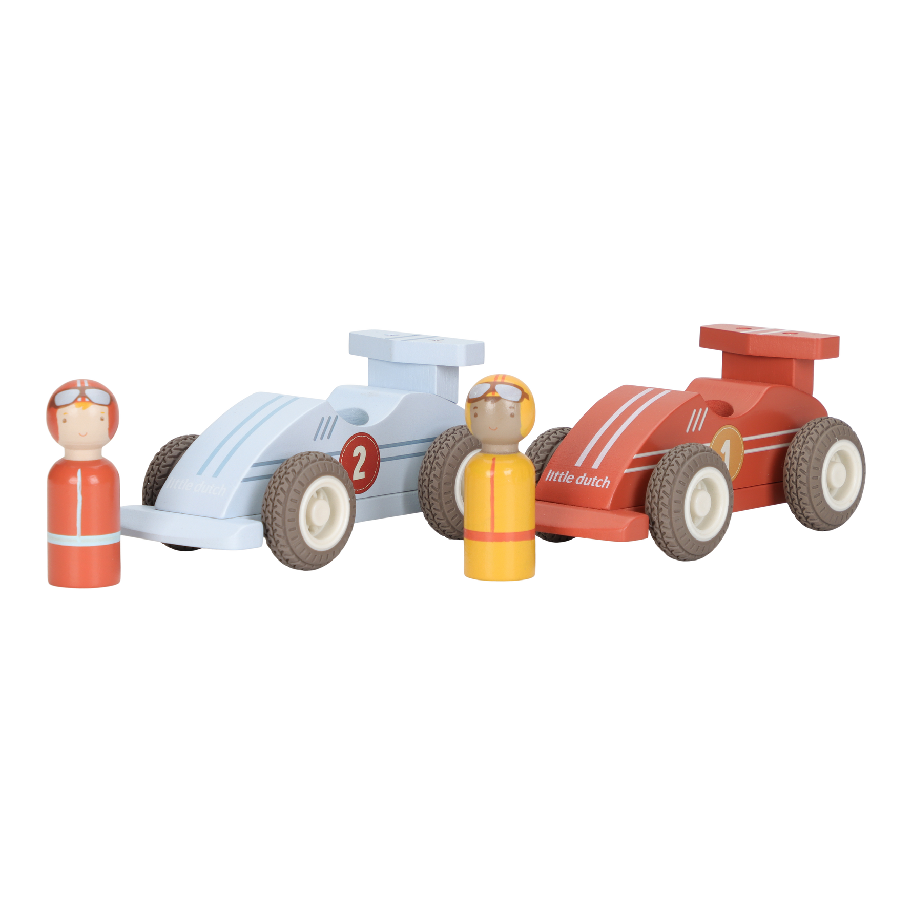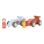 This set of pullback racing cars ensures endless fun. Pull the cars back, let them go and watch them leave at lightning speed. Each car has a cheerful pegdoll rider that you can switch, which makes the role-playing game even more fun. Thanks to the sturdy wooden construction and rubber wheels, the cars drive smoothly over the floor. An exciting addition to the toy collection of little racing enthusiasts. On to the finish!