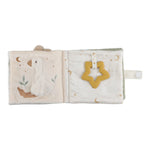 You don't have to be bored with this soft activity book from Newborn Naturals. Baby bunny and Little Goose take you on a playful adventure. There's much to discover with the various textures and activities, such as a mirror, a rattle, and hidden toys. The soft book also has different labels to feel. This book not only stimulates the senses but is also good for the development of hand-eye coordination.