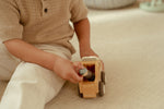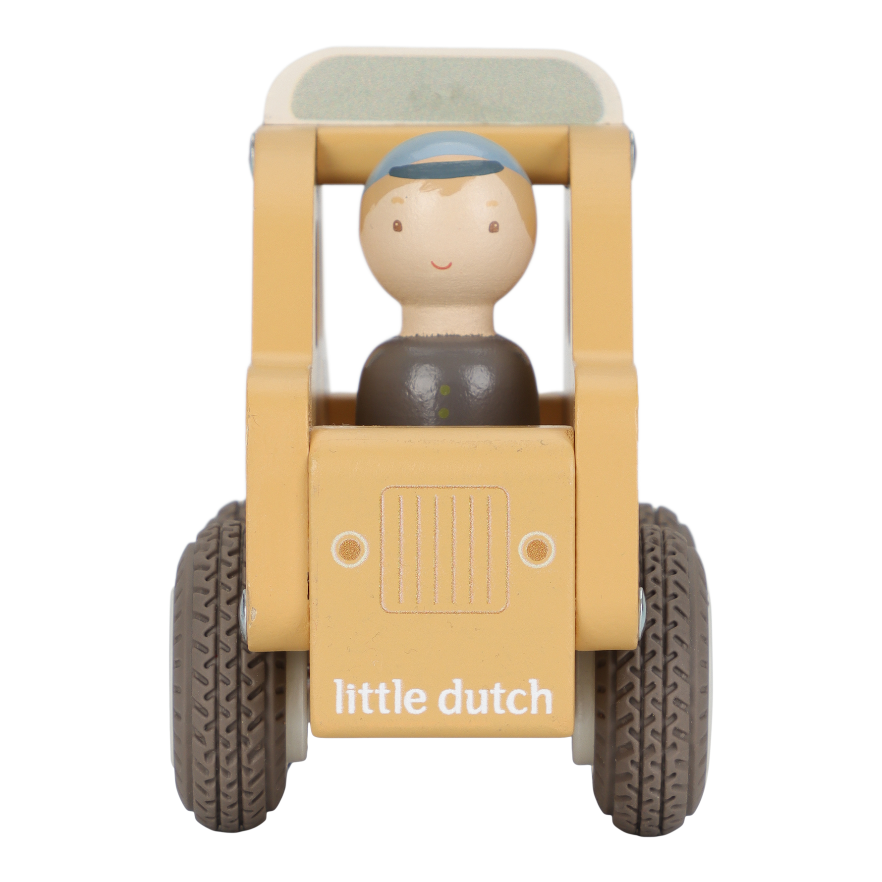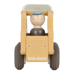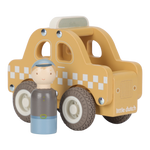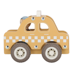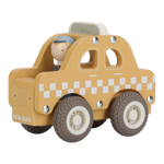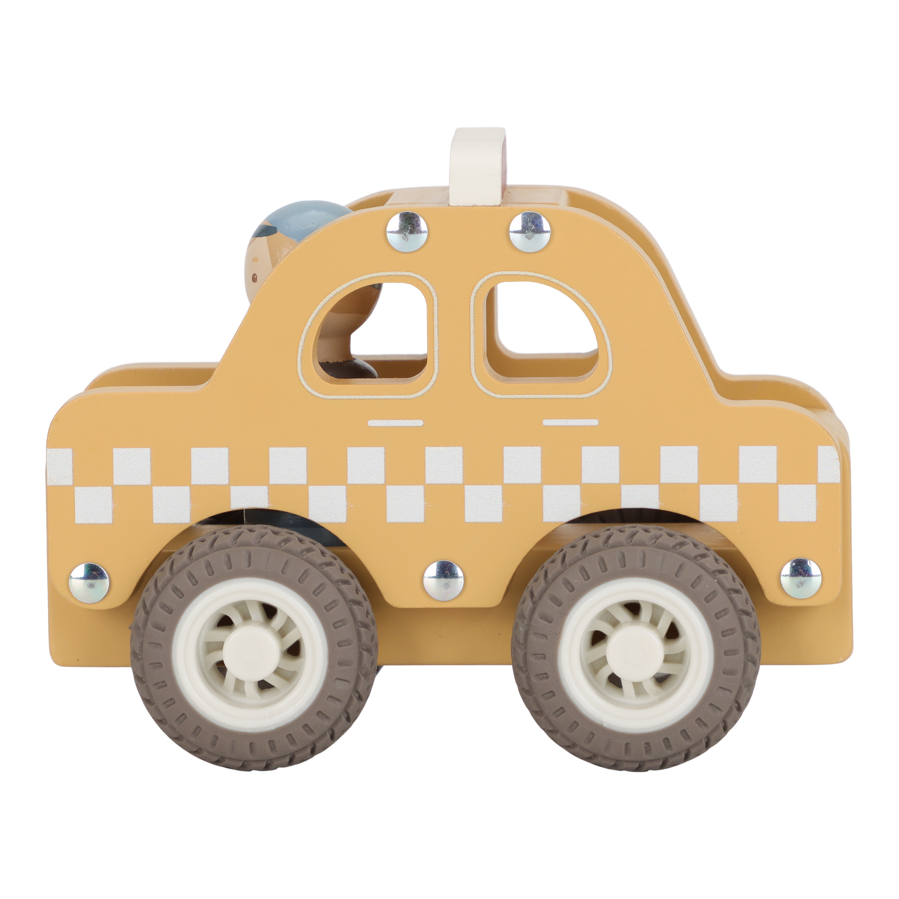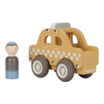 Get in and let's drive you around! This wooden taxi is ready to take passengers safely to their destination. The rubber wheels allow it to drive smoothly and the driver is ready to hit the road. Drive through the busy city, stop at the train station and bring everyone home safely. A timeless toy! Where are you going today?