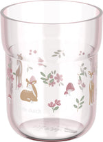 The colourful Mepal Mio 250 ml children's glass with the print Fairy Garden is the ideal glass for children who are just learning to drink. The glass is made of extremely strong plastic, so it can endure rough handling. Also nice: the glass is stackable, BPA-free and can, of course, simply be put in the dishwasher.