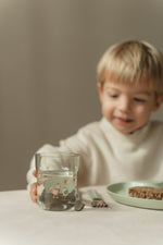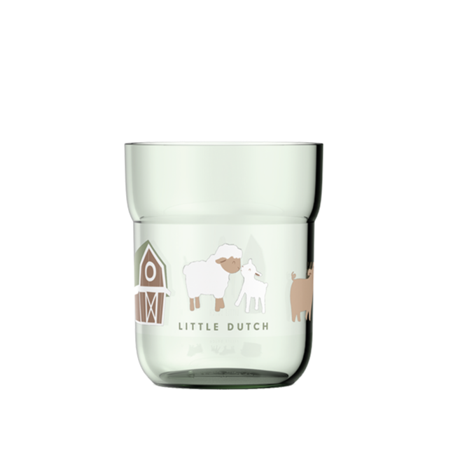 The Little Farm children's glass by Mepal Mio is ideal for children learning to drink from a glass. This obviously takes some getting used to for your child and can cause some mess, but don't worry the glass can take a beating. The glass is very strong, stackable and dishwasher safe.