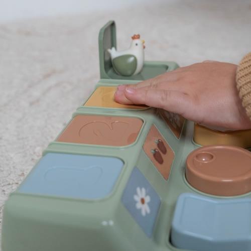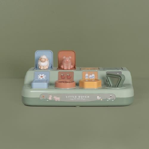 Peekboo! Which farm animal comes out when you are on the buds? Is it a sheep, pig, cow or chicken? The nice thing about the Pop-Up animals is that you can make a fun game with your child. What animal likes to walk among the flowers in the meadow? Which farm animal loves apples? What animal does your milk come from? Which animal lays an egg? This simple game will give your child a lot of fun. As your child discovers the different farm animals, he/she playfully develops his/her problem-solving and fine motor skills.