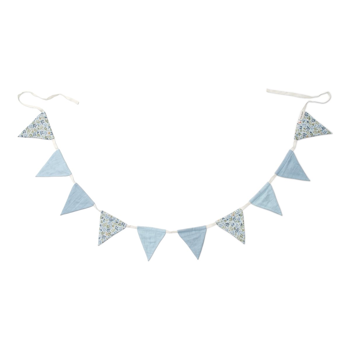 Brighten up the nursery or children's room with this pretty garland of flags. Who says garlands are only for parties! They instantly brighten up a room. On the wall, around the canopy, on a bookshelf or to decorate a play tent. Get creative with this charming fabric garland in soft colour and with sweet 'Forest Adventures' print and colour.
