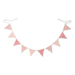 Brighten up the nursery or children's room with this pretty garland of flags. Who says garlands are only for parties! They instantly brighten up a room. On the wall, around the canopy, on a bookshelf or to decorate a play tent. Get creative with this charming fabric garland in soft colour and with sweet 'Fairy Floral' print and colour.