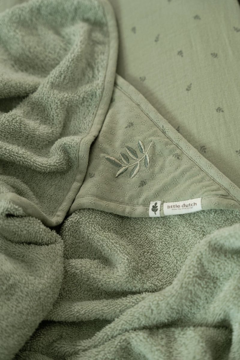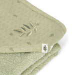Wrap your little one in warmth and softness with this hooded towel. Made from 100% organic cotton terry, it feels soft and gentle on your child's delicate skin. The towel's soothing greyish green Sage colour, creates a serene atmosphere. The towel has a beautiful colour and a hood with a sweet print for a touch of extra charm.
