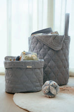 Looking for a stylish and practical solution for the changing table? This handy Little Dutch changing basket will keep nappies, tubes and bottles neatly organised and always within easy reach! The basket is sturdy and beautifully finished, a real asset for the nursery. The soft Pure Denim Blue colour and subtle print add a soothing touch, and the basket is also reversible for variety. This must-have is available in different sizes, shapes and colours.