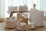 Looking for a stylish and practical solution for the changing table? This handy Little Dutch changing basket will keep nappies, tubes and bottles neatly organised and always within easy reach! The basket is sturdy and beautifully finished, a real asset for the nursery. Made of a knitted fabric in 100% organic cotton.