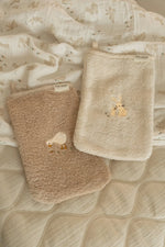 Make bath time extra nice with these super-soft terrycloth flannels. Made of 100% organic cotton, they provide a soft touch on your little one's delicate skin. This set of two flannels in different colours has cute embroidery and a handy loop for quick drying. Measuring 21 x 14 cm, they are perfect for any gentle exfoliation session, even if the bath is not your little one's favourite activity!
