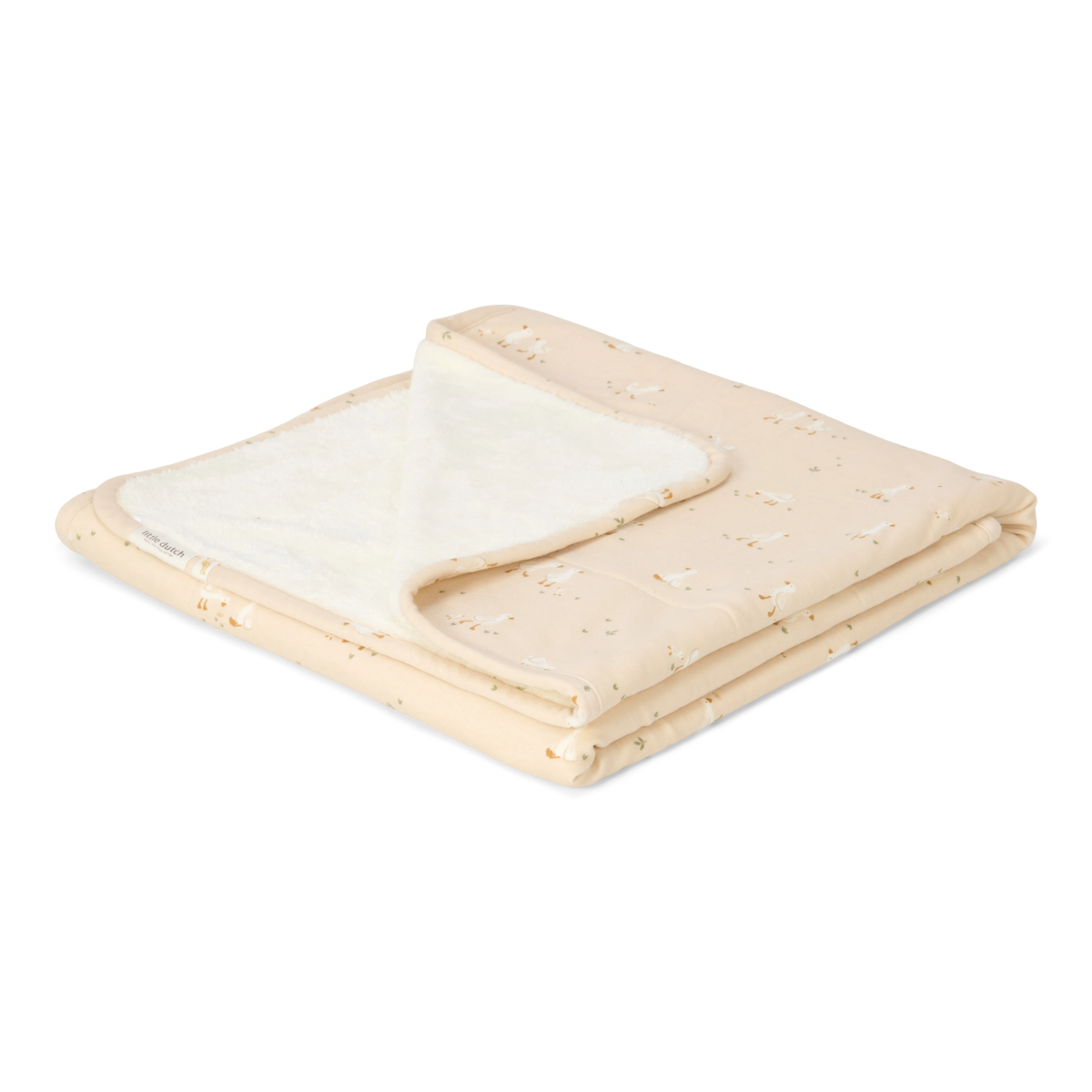 A beautiful bassinet blanket that will keep your little one wonderfully warm. With soft jersey on one side and cosy fleece on the other, this blanket is versatile: use it as a shawl, bedspread or even as a play mat. Decorated with cute little geese, this one from the Little Goose collection combines the best of nostalgia with a fresh, modern touch. It is made of 100% organic cotton and has a generous TOG value of 2.5, perfect for cold nights. And convenient: you can simply machine wash it at 30 degrees!