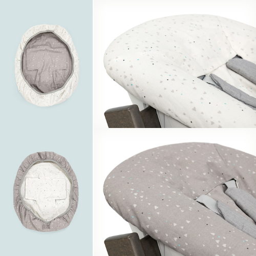 Dress up your Tripp Trapp® Newborn Set with our reversible textile cover. Having a different print on both sides lets you change your look. It's easy to place on and take off to keep your baby's space super clean. Simply machine wash at 40 degrees. Best of all, it's gentle to the touch and provides your baby extra comfort with an amazingly soft lining. Compatible with the Tripp Trapp® Newborn Set from serial number 101BB0600000.