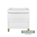 Featuring three spacious drawers with luxurious soft-close mechanisms, the Serena Nursery Dresser provides ample space for nappies, wipes, creams, clothes, blankets, and so much more. Everything you need is neatly organized and easily accessible.