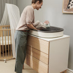 The Stokke® Sleepi™ Dresser is our latest innovation and the perfect addition to our Stokke® Sleepi™ nursery concept. Taking a holistic approach, the design language is consistent with Stokke® Sleepi™ cribs. It has also been awarded the Red Dot Design Winner 2022. As versatile as it is beautiful, the Stokke® Sleepi™ Dresser features three spacious, soft-closing drawers that open and close with a gentle push. This gives parents loads of storage and easy access to their children's clothes, toys & treasures. Made with clean Scandinavian design, solid wooden legs and a tactile front surface in beech, it combines form and function with quality and durability. The result – a classic piece of furniture that works in a variety of interiors that will last for years.