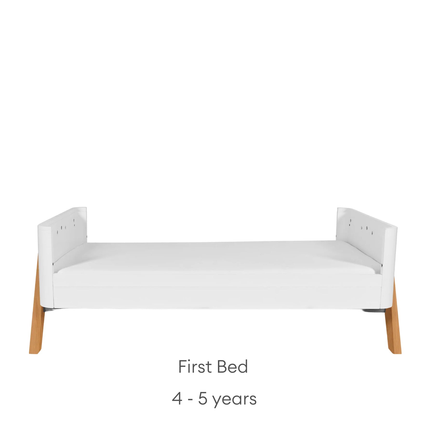 The cot bed grows with your child through 5 different stages: with three adjustable mattress heights (Newborn, 3 months, 6 months+) then easily converts from a cot to a Toddler Bed (2-3 years) and a First Bed (4-5 years).