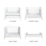 2. Cot Bed suitable from birth to the age of 5+ . Easily convertible through 5 different stages (all parts included)