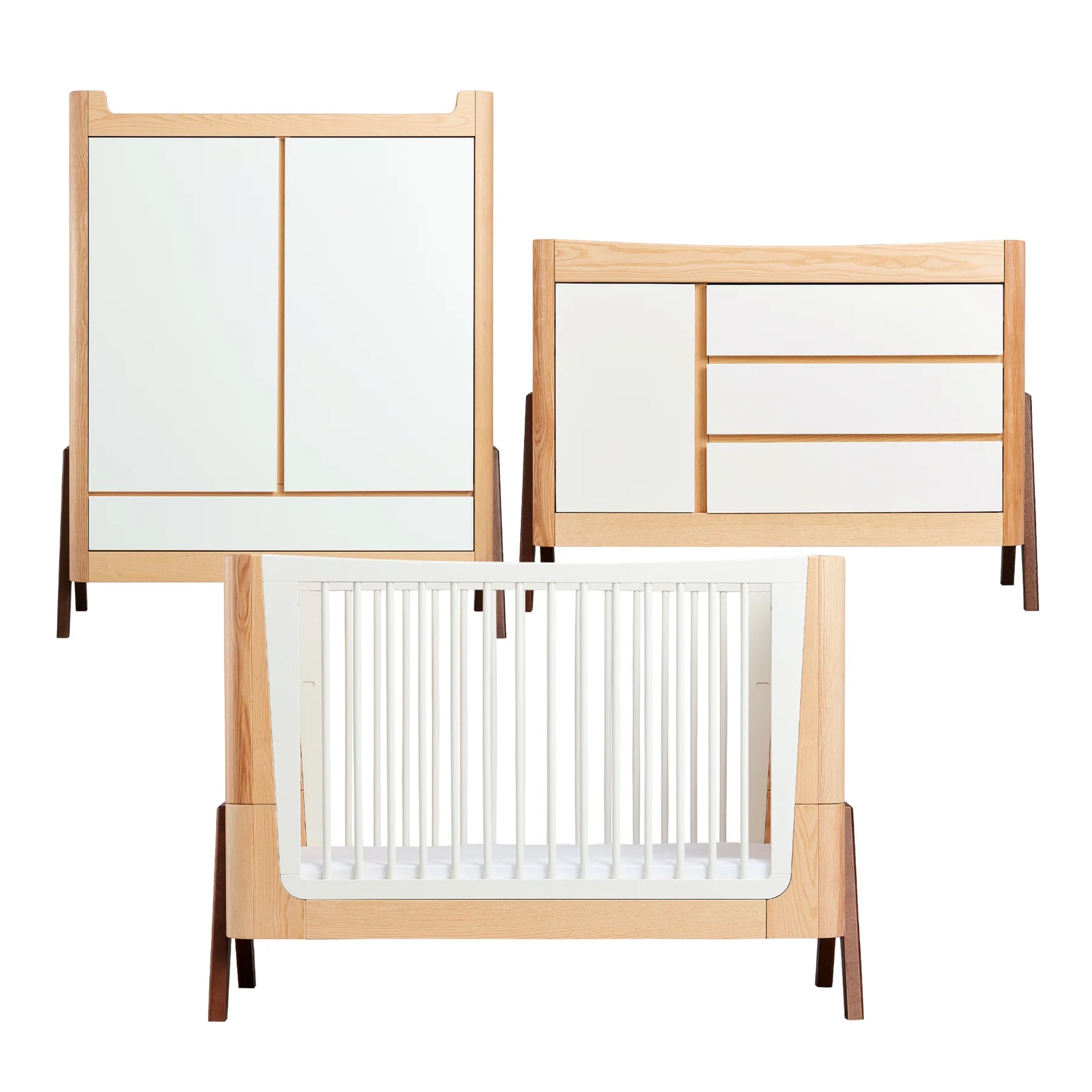 Hera 3 Piece Set - Cot, Dresser & Wardrobe - Natural/Walnut