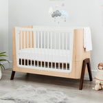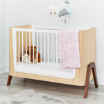 Made using sustainably sourced European natural ash wood, the Hera Nursery Collection is certified to the highest global safety standards. Inspired by classic Scandinavian designs the Hera Cot Bed features contrasting accents, gently curved ends and a beautiful real wood grain.